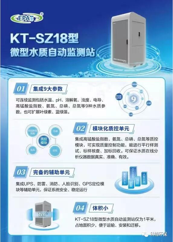 KT-SZ18型微型水質(zhì)自動(dòng)監(jiān)測(cè)站僅為1平米,占地面積少,便于運(yùn)輸、安裝和遷移。